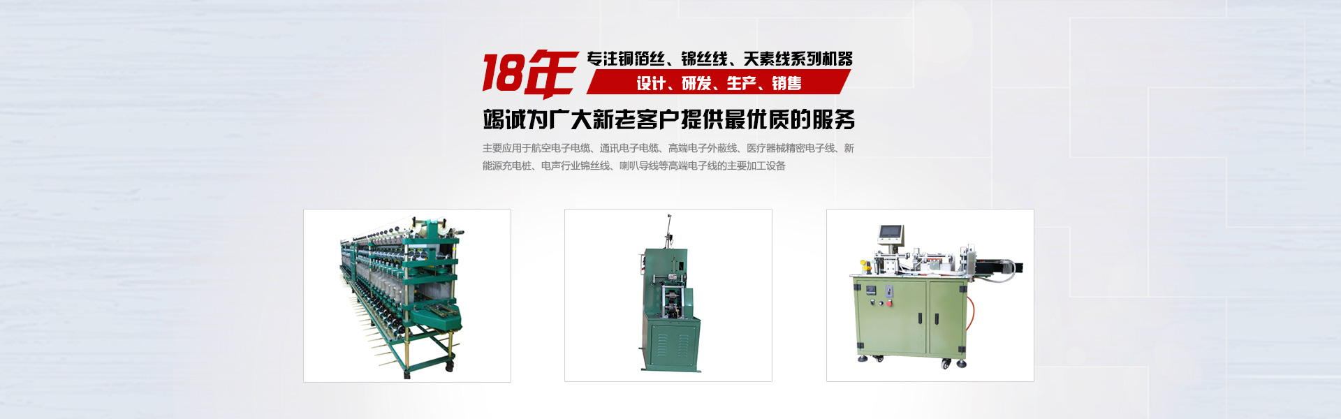 公司在原有的主打產(chǎn)品銅箔絲纏繞機(jī)、銅箔線(xiàn)壓延機(jī)的基礎(chǔ)上相繼開(kāi)發(fā)了,雙頭的銅箔絲纏繞機(jī)、多層退扭的銅箔絲纏繞機(jī)、以及應(yīng)用于錦絲線(xiàn)生產(chǎn)加工的全自動(dòng)鍍錫裁切機(jī)等等。